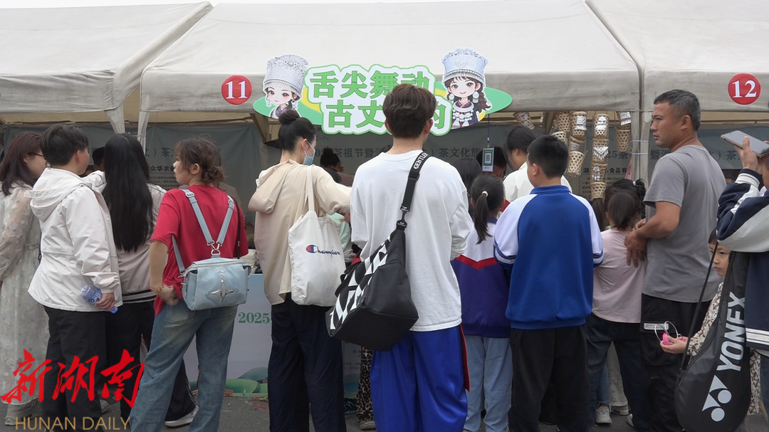集市另一边,手工制作的小竹篓、苗绣制品、彩色编织篮、银饰等文创产品琳琅满目,融合了现代设计和民族元素,既好看又有文化内涵,吸引不少年轻游客欣赏购买。还有精彩纷呈的茶文化非遗展演,让大家沉浸式感受古丈茶文化的独特魅力。“今天的活动好玩、好吃、茶又好喝,把茶的产业链延伸得很好,为古丈大大的点赞!”外地游客覃菊英赞叹道。
