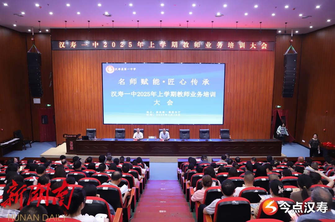 汉寿融媒4月21日讯(通讯员:陈雨欣) 4月18日,汉寿一中在崇高楼一楼报告厅召开教师业务培训大会。会议特邀湖南师大附中课程与教学处副主任王建主讲,学校党委书记胡浩主持。