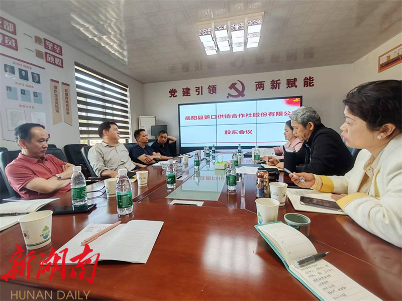 湖南日报·新湖南客户端4月21日讯(通讯员 王珈琪) 4月17日,岳阳县筻口供销合作社股份有限公司召开股东会议,市供销合作联社党委委员、理事会副主任周傲文出席会议,县供销社相关负责人参会。
