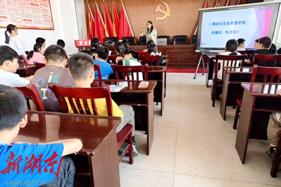 视外桃源客户端4月18日讯(通讯员: 鲁青 ) 为进一步增强未成年人防范意识和自我保护能力,助力构建家庭、学校、社会协同保护未成年人服务网,保障未成年人合法权益,4月17日,桃源县妇联走进夷望溪中学和夷望溪小学,为两个学校700余名同学们送上了一堂生动且实用的未成年人防性侵宣讲课。