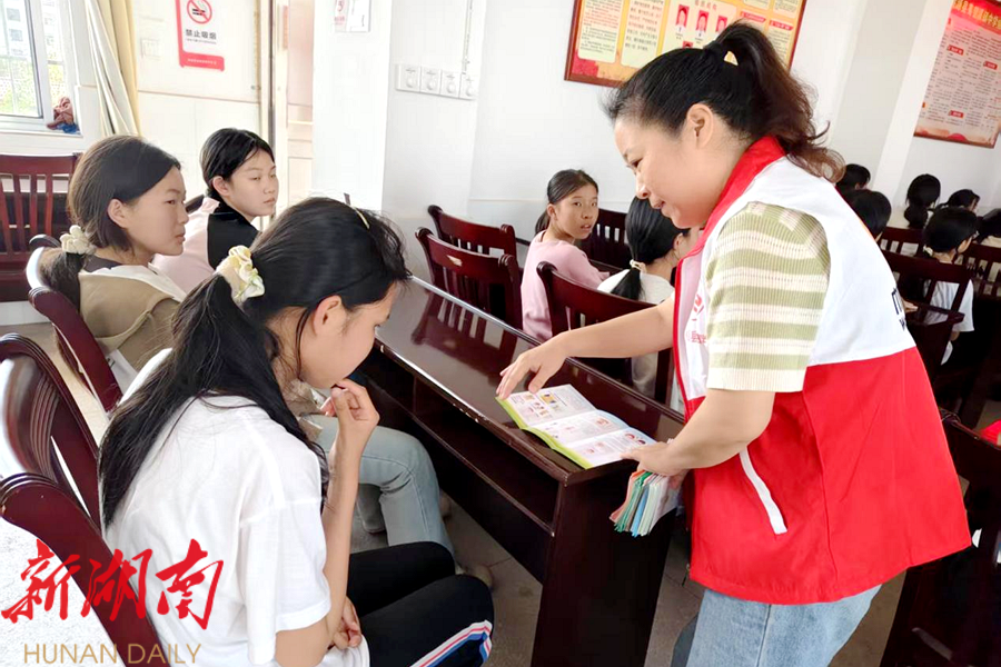 活动中,巾帼志愿者们还发放了《未成年人保护法》等宣传折页。