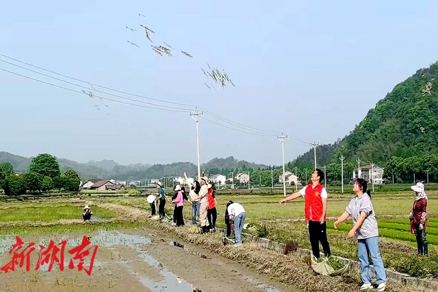 视外桃源客户端4月16日讯(通讯员: 吕秋蓉 ) 清风冷暖总相宜,当下农耕正恰时。为在全镇形成重视农业、建设农村、尊重农民的良好氛围,4月15日上午,杨溪桥镇组织35岁以下年轻干部到朝阳庵村开展了“助农抛秧忙春耕”主题党日活动。