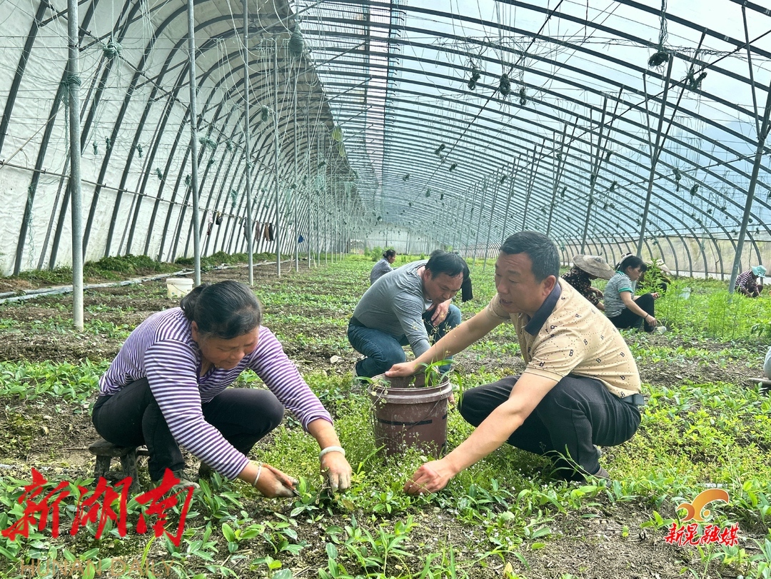 经过多次考察与洽谈,百援医药集团最终决定在这里建立一个金果榄种育基地,采用“公司+基地+农户+互联网”的发展模式,携手打造一条中药材产业链。这一决策不仅在村里撂荒田地上开辟中药材种植项目50多亩,实现亩产量超1000斤,年产值超200万元,还帮助15位村民实现家门口就业,发放工资15万余元。正在基地里做工的长塘坪村村民杨春英告诉记者,现在在家门口就有事情干,还能照顾家里的老人和小孩,感谢工作队。在工作队的不断努力下,红花、三叶青、黄精育苗基地等纷纷落户长塘坪村。