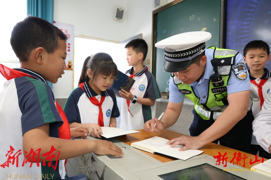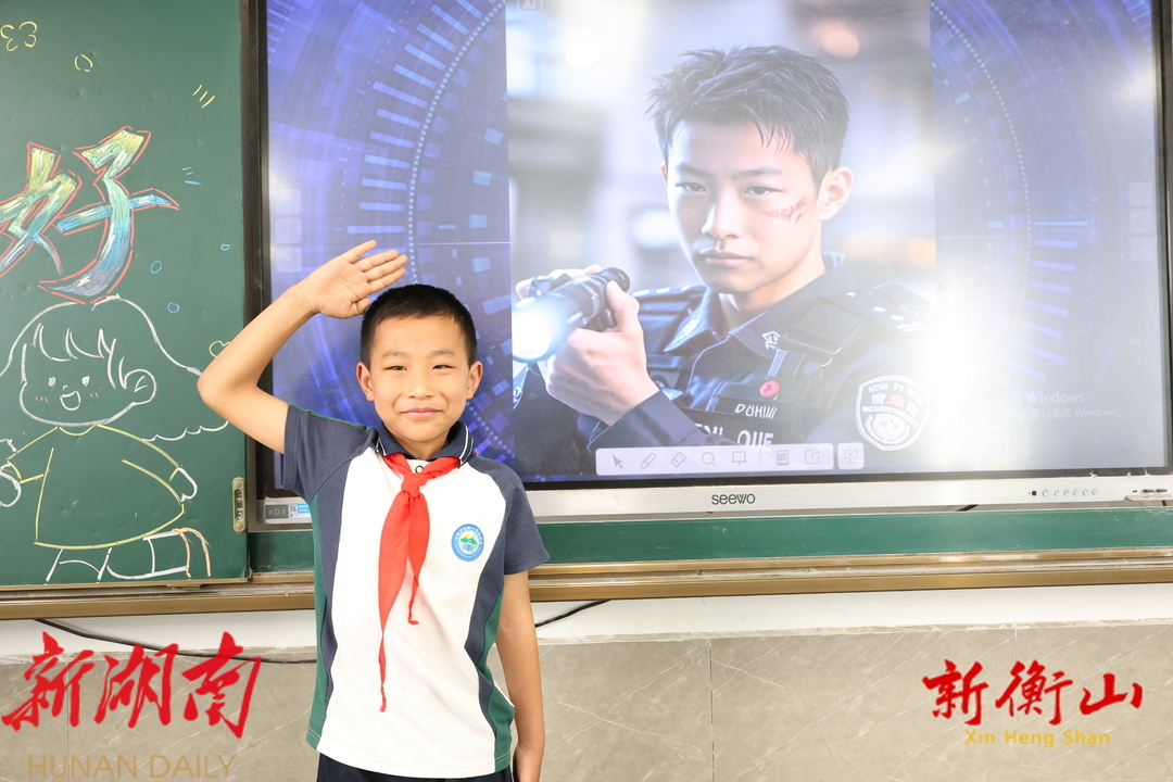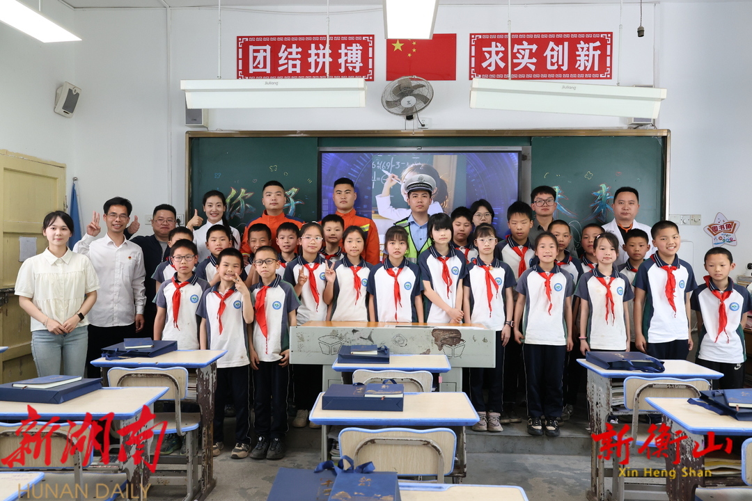 “你好,请问你是秦思源吗?我是来自衡山县公安局交警大队白果中队的民警伍程。听说,你的梦想是成为一名交警,今天我特意来到学校看你,希望在以后的道路上无论遇到什么困难都能好好克服,期待看到你英姿飒爽地站在道路上指挥交通的一天!这是我们送给你的小礼物,希望你能好好学习,努力向上!”交警伍程的出现,给才站在讲台上说完自己梦想的秦思源同学一个“巨大的惊喜”。很快,医生、法官、消防员、电力工人……也陆续“空降”教室,当孩子们见到自己心中理想职业的“真人版”时,教室瞬间被惊叹声和欢呼声淹没,仿佛每一个孩子的梦想都在这一刻被点亮。