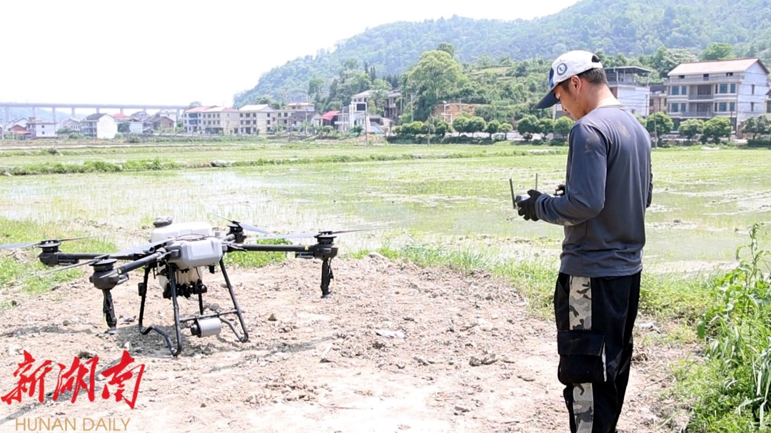 冷水江市粘禾花种养专业合作社负责人郭纯洁说 :“我们使用无人植保机的话,极大地减少了人工成本,像我种植了600亩水稻的话,在施肥、打药方面大概只需要两天就能完成。”