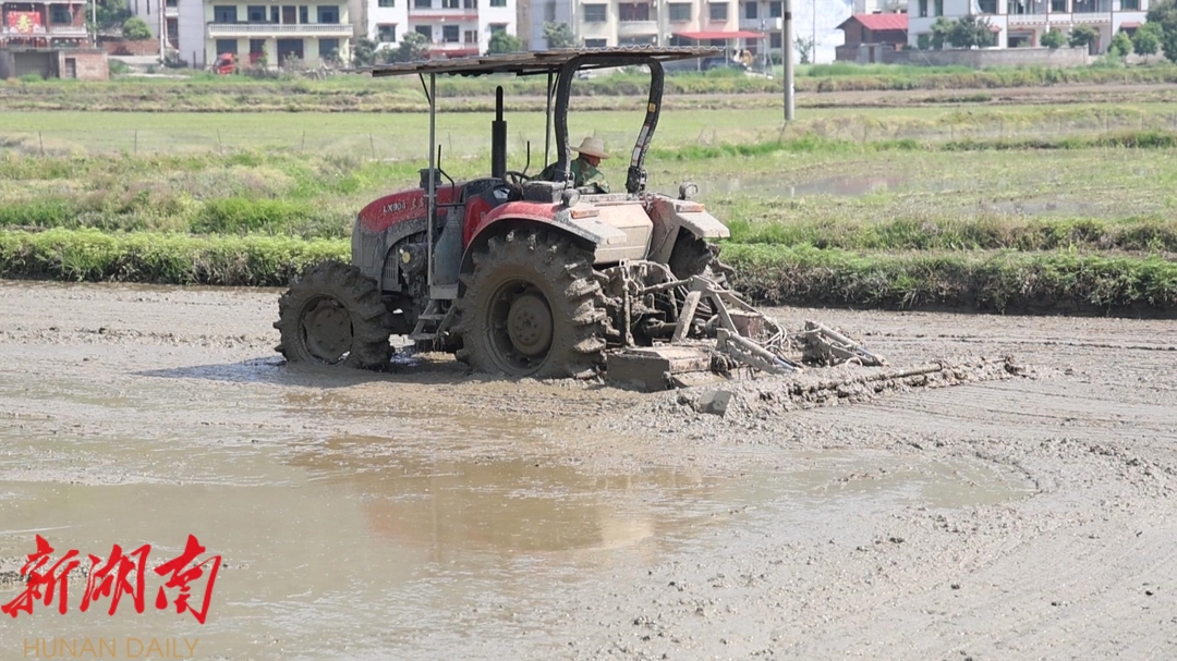 市畜牧水产和农机事务中心副主任张关键说:“现在的旋耕机都带了一个平衡仪,这是为了让田块旋耕的时候更平整,适合于机插机抛。”