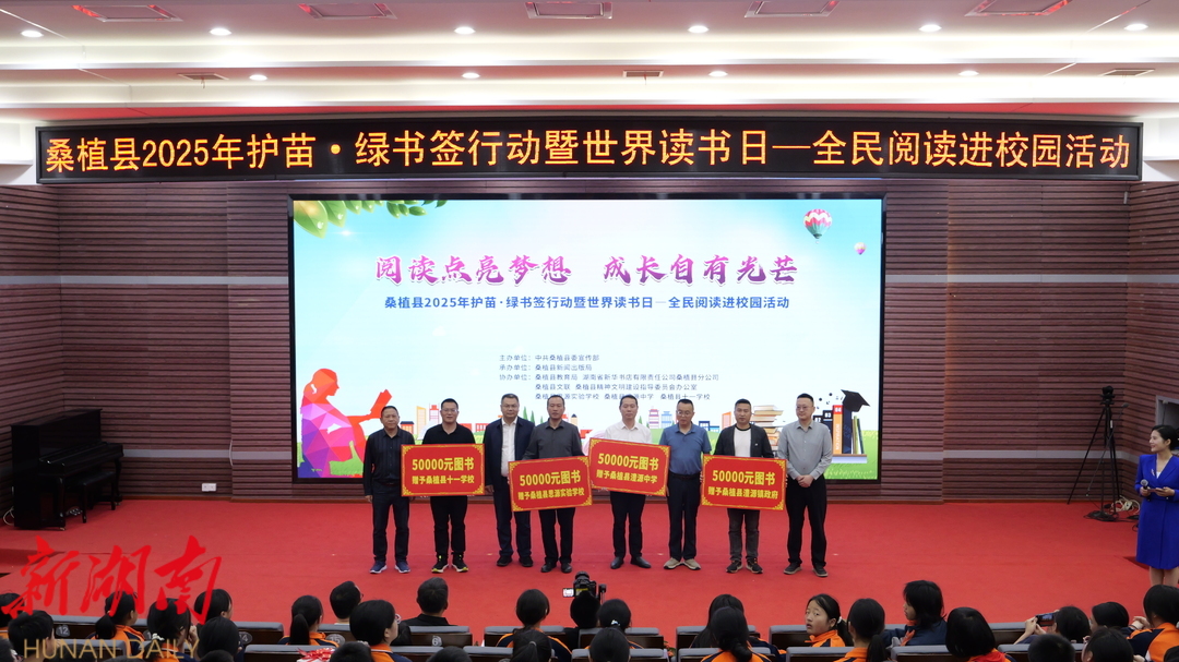 湖南日报·新湖南客户端 4月22日讯(通讯员 肖君)4月22日,桑植县在县思源实验学校举办2025年“护苗·绿书签”行动暨世界读书日——全民阅读进校园活动。本次活动以“阅读点亮梦想·成长自有光芒”为主题,通过图书捐赠、读书分享等形式,进一步激发学生读书热情,助力书香桑植建设。县委常委、宣传部部长王玉成出席活动。