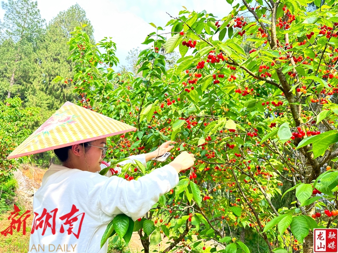 龙山县融媒体中心4月22日讯(通讯员 刘阳)近日,农车镇哪咱村的樱桃园迎来了一年中最热闹的时候。走进果园,一颗颗红玛瑙般的樱桃缀满枝头,在阳光下晶莹剔透,空气中弥漫着清甜的果香。果农们正忙着采摘、分拣,游客们提着篮子穿梭其间,欢声笑语不断。
