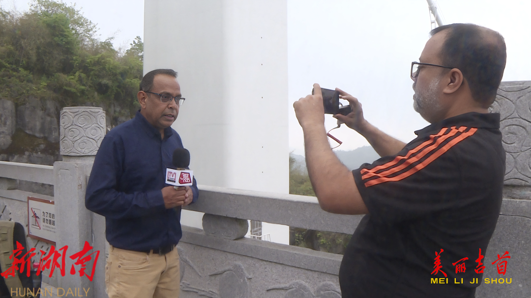 吉首市融媒体中心4月21日讯(全媒体记者 田鹏)4月21日上午,由印度7家主流媒体组成的访华代表团来到吉首市,参观考察矮寨大桥。