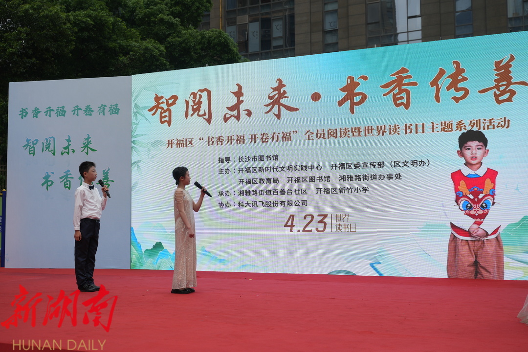 湖南日报·新湖南客户端4月23日讯(通讯员 曹江 任萱)23日,一场融合科技与人文的阅读盛宴在开福区新竹小学精彩上演。作为开福区"书香开福 开卷有福"全员阅读系列活动的重要组成部分,本次活动以"智阅未来·书香传善"为主题,通过AI技术赋能传统文化,创新演绎"善"文化内涵,为全民阅读注入新活力。