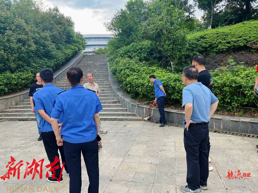 针对这一情况,4月22日,临武县城市管理和综合执法局联合县发改局、郴电国际临武分公司、武水镇及邝家社区开展沙溪湖公园“飞线”经营专项联合整治行动。