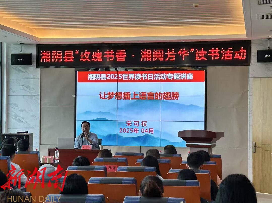 4月16日,在湘阴县“玫瑰书香・湘阅芳华”主题阅读活动现场,岳阳日报社有关负责人带来了《让梦想插上语言的翅膀》主题分享。他结合自身阅历,从古今中外视角,围绕写作、说话、阅读、做人“四个维度”,以生动案例系统讲解文字工作方法;来自岳阳市朝阳小学的讲师紧扣“读书要读经典”主题,深入剖析经典著作价值,引导学生阅读经典、提升写作能力,为参与者带来一场知识盛宴。