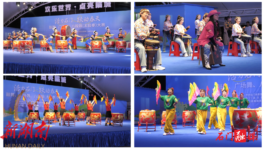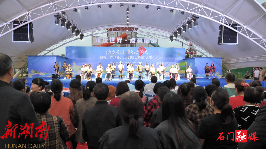 启动仪式后,鼓舞比赛在所有参赛队伍奏响的《万鼓齐鸣》中拉开帷幕。比赛中,来自全县各乡镇街道的14支参赛队伍依次登场。在一首首振奋人心的乐曲声中,鼓手们身着特色服装,挥舞手中的鼓槌,不时变换阵型,以酣畅淋漓的气势,强劲刚烈的鼓点,闪展腾挪的姿态,展现出石门人民精神饱满,意气风发、与时俱进的精神风貌,为观众呈现出一场视听盛宴。最终,壶瓶山镇代表队夺得桂冠。