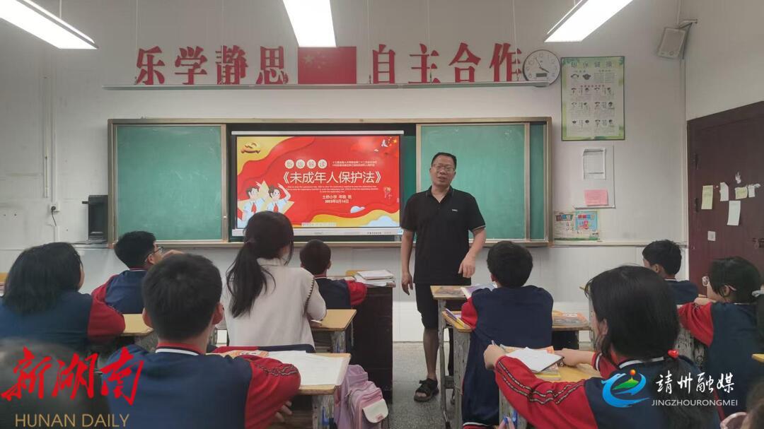 靖州融媒4月23日讯 (通讯员 黄同桥 姚沅政) 4月22日,靖州苗族侗族自治县土桥小学组织开展“预防未成年人犯罪”主题班会,为学生扣好“人生第一粒法治扣子”。