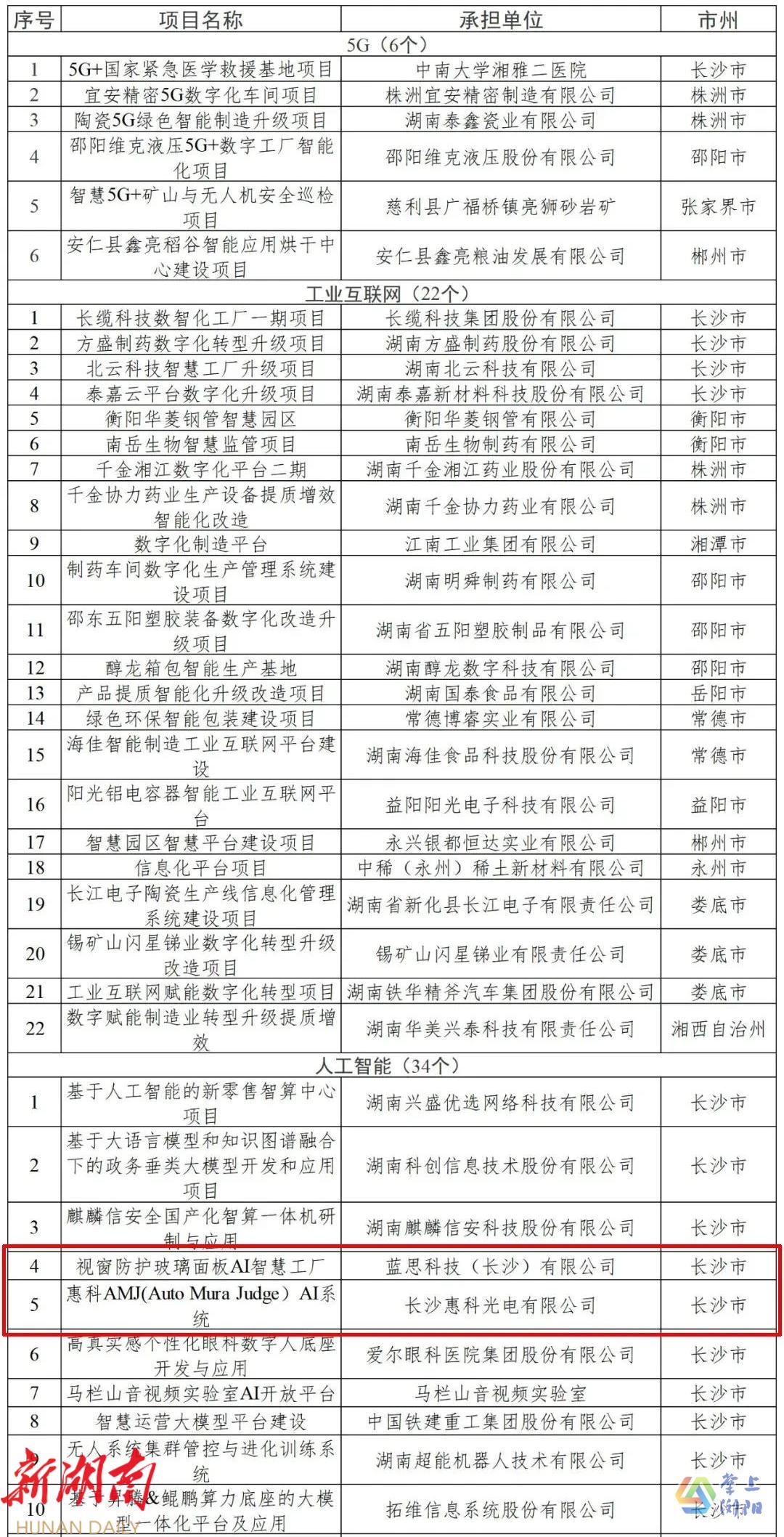 近日,省工信厅公布《湖南省“数字新基建”100个标志性项目名单(2025年)》,这是我省连续第六年公布“数字新基建”标志性项目名单。