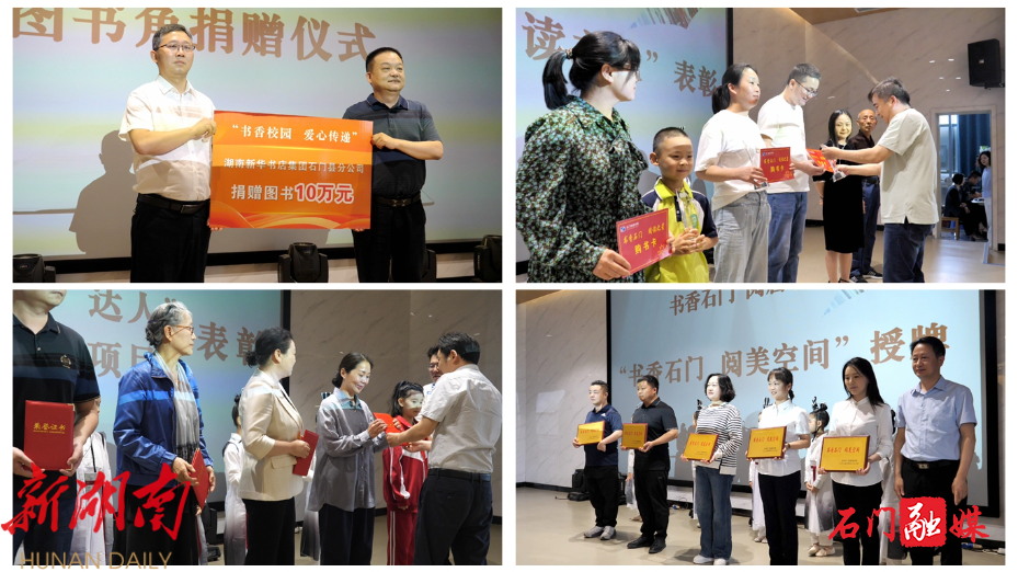 启动仪式发布了2025石门县全民阅读十大系列活动,宣读了“书香石门 全民阅读”倡议书;县新华书店向县教育局“书香校园 爱心传递”图书角现场捐赠了价值10万元的图书及配套物资;对5名“书香石门 阅读之星”、6名“书香石门 阅读推广达人”、1个“书香石门 阅读推广项目”进行表彰,为5家“书香石门 阅美空间”进行授牌。
