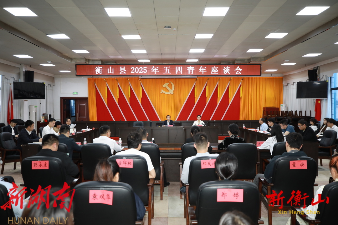 新衡山客户端4月24日讯(记者:刘永欢 周彭斌)4月24日,我县召开2025年五四青年座谈会。衡阳市政协副主席、衡山县委书记戴新贤出席会议,希望全县广大青年朋友们进一步激发信仰、获得启发、汲取力量,充分施展自己的才华抱负,以更昂扬的姿态积极投身家乡建设,努力续写衡山青年的奋斗佳话。