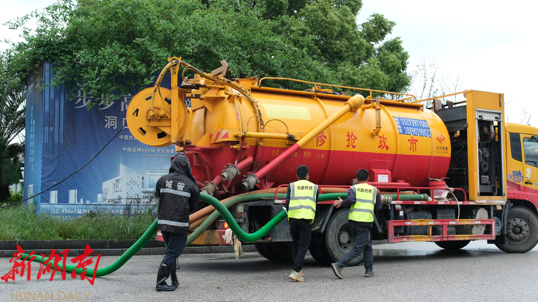 随着一声令下,抢险作业组立即对内涝附近路面落水口进行逐个清理,并启动抽水机进行抽水排涝;高压疏通清洗组对支管堵塞的落水口进行高压钻头疏通,并对内涝已消退区域进行路面冲洗。内涝处置完成后,各小组整理抢险物资准备撤离。