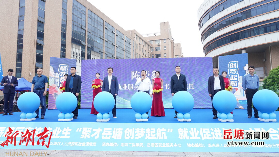 岳塘融媒4月23日讯 (通讯员:郭奕含)为深化校企合作,激发高校毕业生留潭留岳就业创业的内生动力,4月23日上午,2025年岳塘区高校毕业生“聚才岳塘 创梦起航”就业促进与产才融合系列活动启动仪式在湖南工程学院举行。湖南省就业服务中心党委书记、主任陈荣鑫宣布活动正式启动。湖南工程学院党委委员、副校长张小刚,湘潭市人力资源和社会保障局党组书记、局长阳涛,岳塘区委常委、常务副区长唐俊杰出席并致辞。