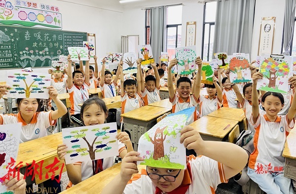 4月22日,临武县八完小开展阅读主题绘画活动,同学们以树为形,将读过的书籍、感悟化作枝叶花朵,生动展现阅读成果,为校园阅读氛围添上绚丽一笔。(通讯员:邝丽元)