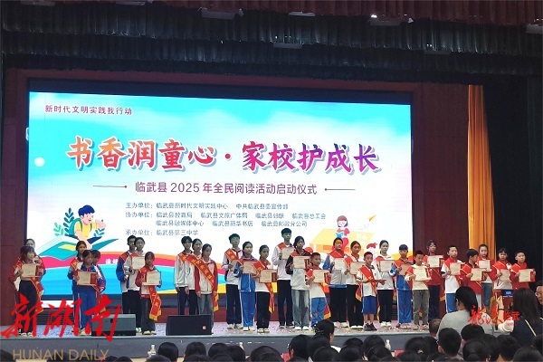 4月21日,临武三中举行2025年“书香润童心 家校护成长”全民阅读活动启动仪式,通过读书舞台剧、千人诵读经典、阅读短视频展等形式生动诠释阅读的魅力。(通讯员:骆庆军)