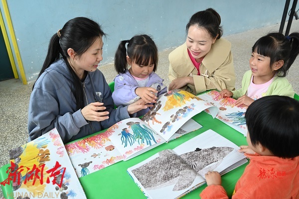 4月23日,临武县幼儿园开展帮扶送教下乡活动,通过绘本阅读教学活动,引领孩子们畅游书山墨海,感受阅读乐趣。(通讯员:肖海云)