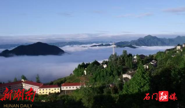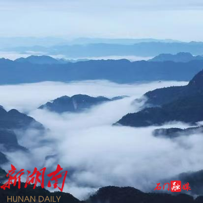 新石门客户端4月24日讯(作者 陈千中)云海在脚下翻涌,晨露浸润的茶芽泛着翡翠般的光泽。在东山峰瞭望塔的旋梯上,看阳光穿透云层,整片山峦仿佛被镀上了金箔。