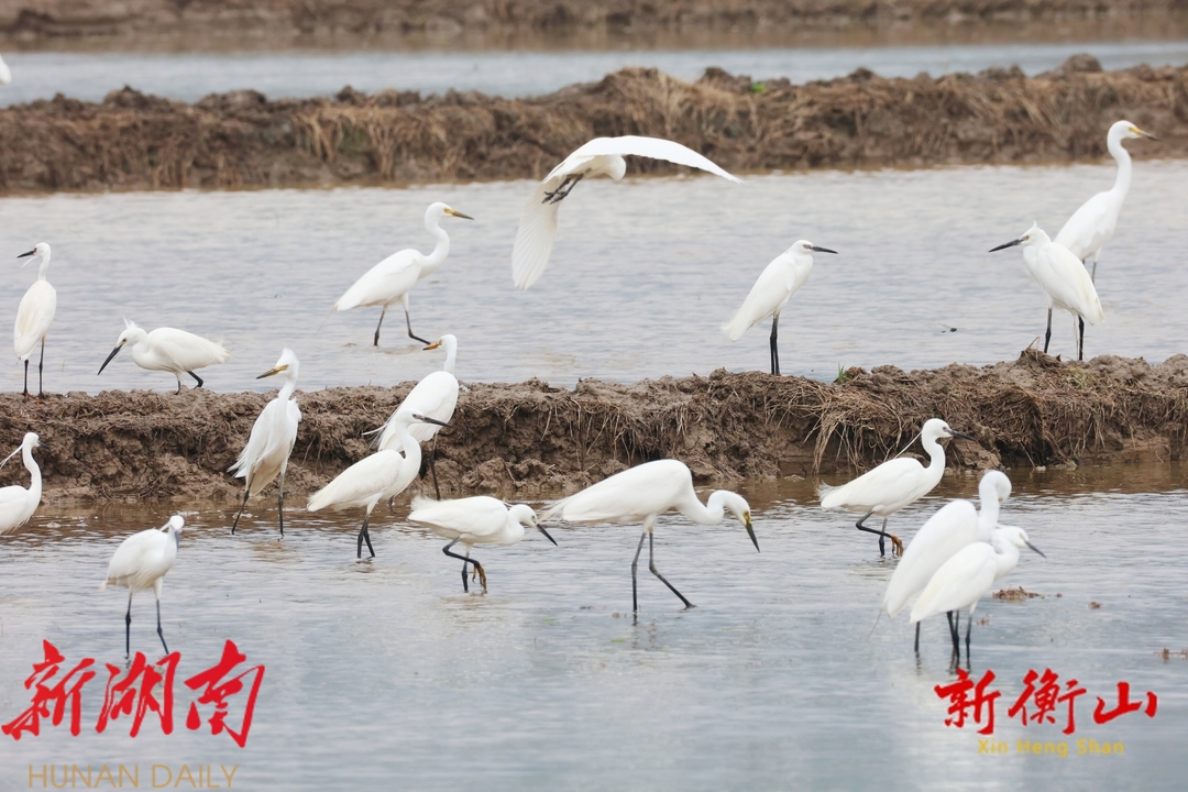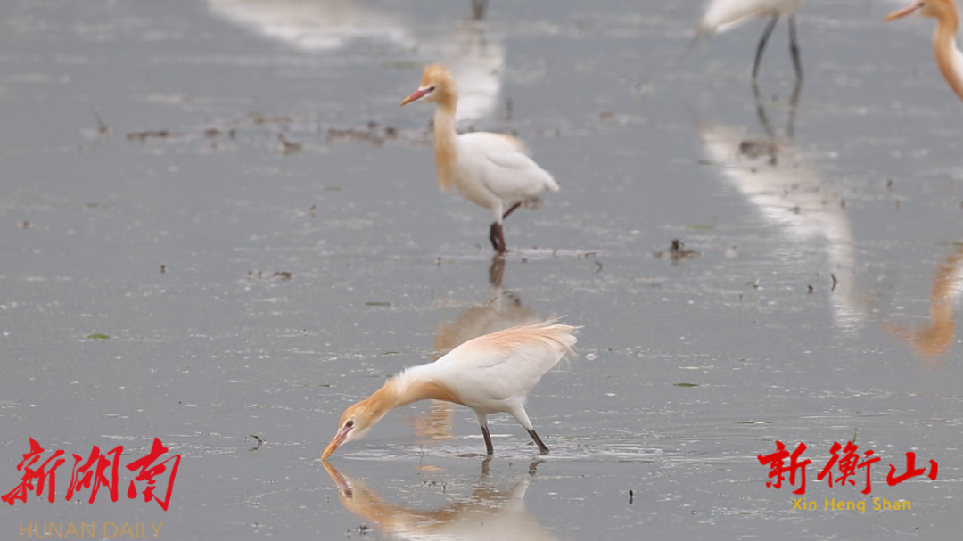 近几年,衡山县不断加强生态环境建设,加大候鸟保护力度,同时,大力推广绿色高质高效高产水稻生产模式,自然生态环境不断改善,吸引了越来越多的鹭鸟前来安家落户、繁衍后代。每到耕种犁田时,泥土里翻出来的昆虫、蚯蚓、泥鳅、黄鳝等吸引大批白鹭、牛背鹭等鹭鸟前来觅食。