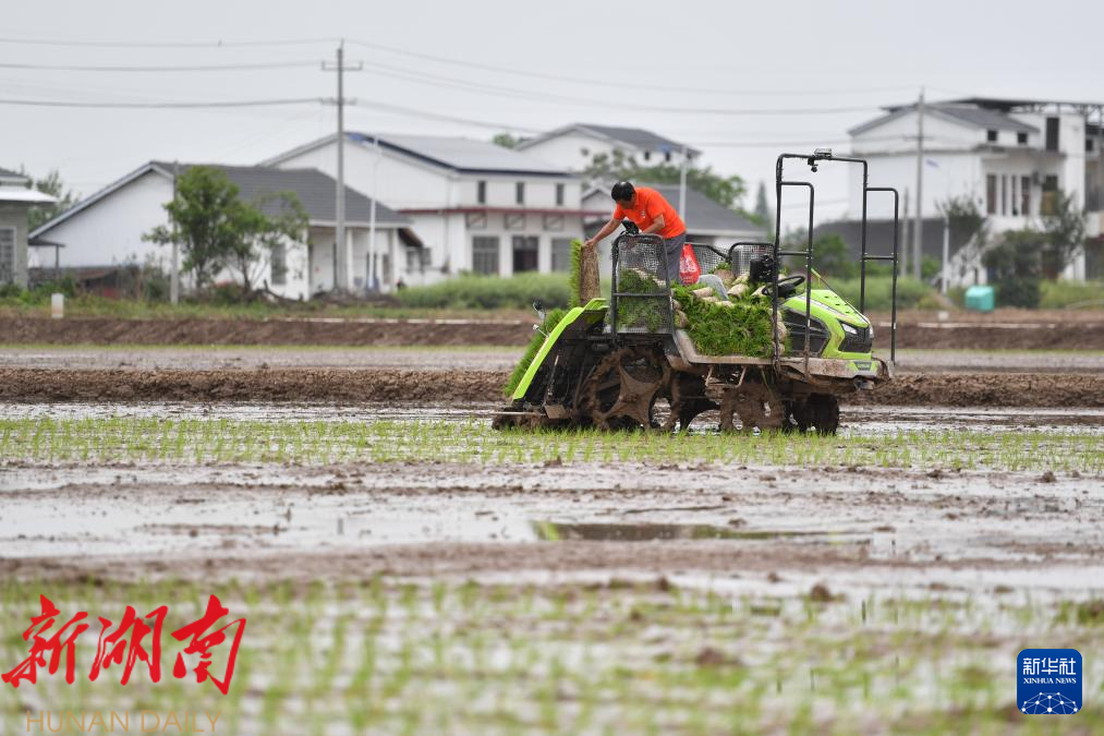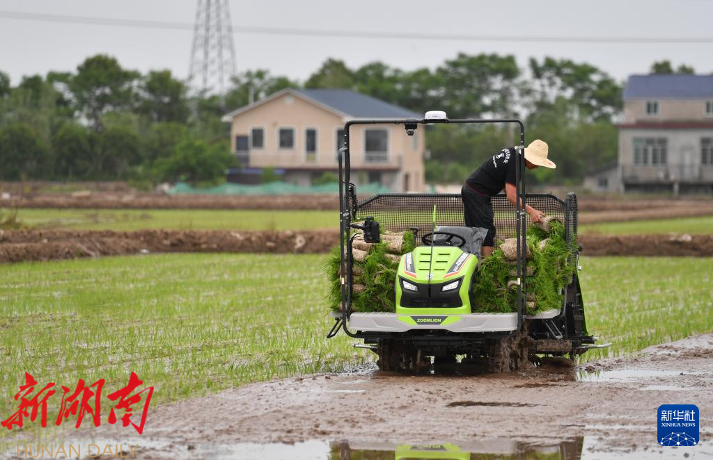 当日,十余台无人驾驶插秧机在湖南省益阳市南县南洲镇班嘴村的农田里作业。这些插秧机可实现路径规划、实时定位等智能功能,只需人工补充秧苗,在节省人力的同时,使插秧作业更加规范、高效。