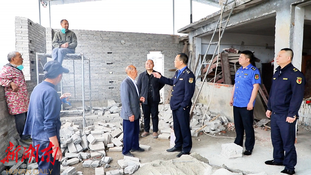 近日,洞口县城管局执法队员在城区开展日常巡查时发现,一桥北端沿江路某经营性自建房屋主未经审批,擅自在楼顶违规砌墙建房。执法队员第一时间约谈房主,现场宣讲《城乡规划法》等法律法规,明确告知自建房违规加层可能导致的结构安全风险,并依法下达《责令整改通知书》。