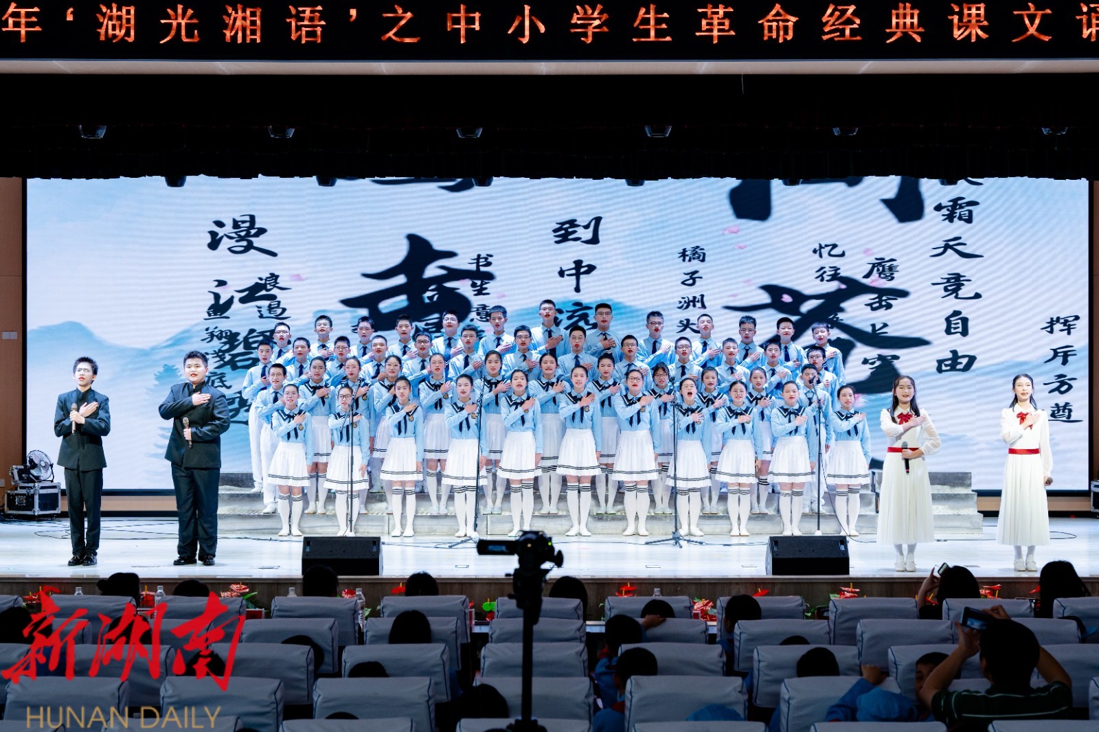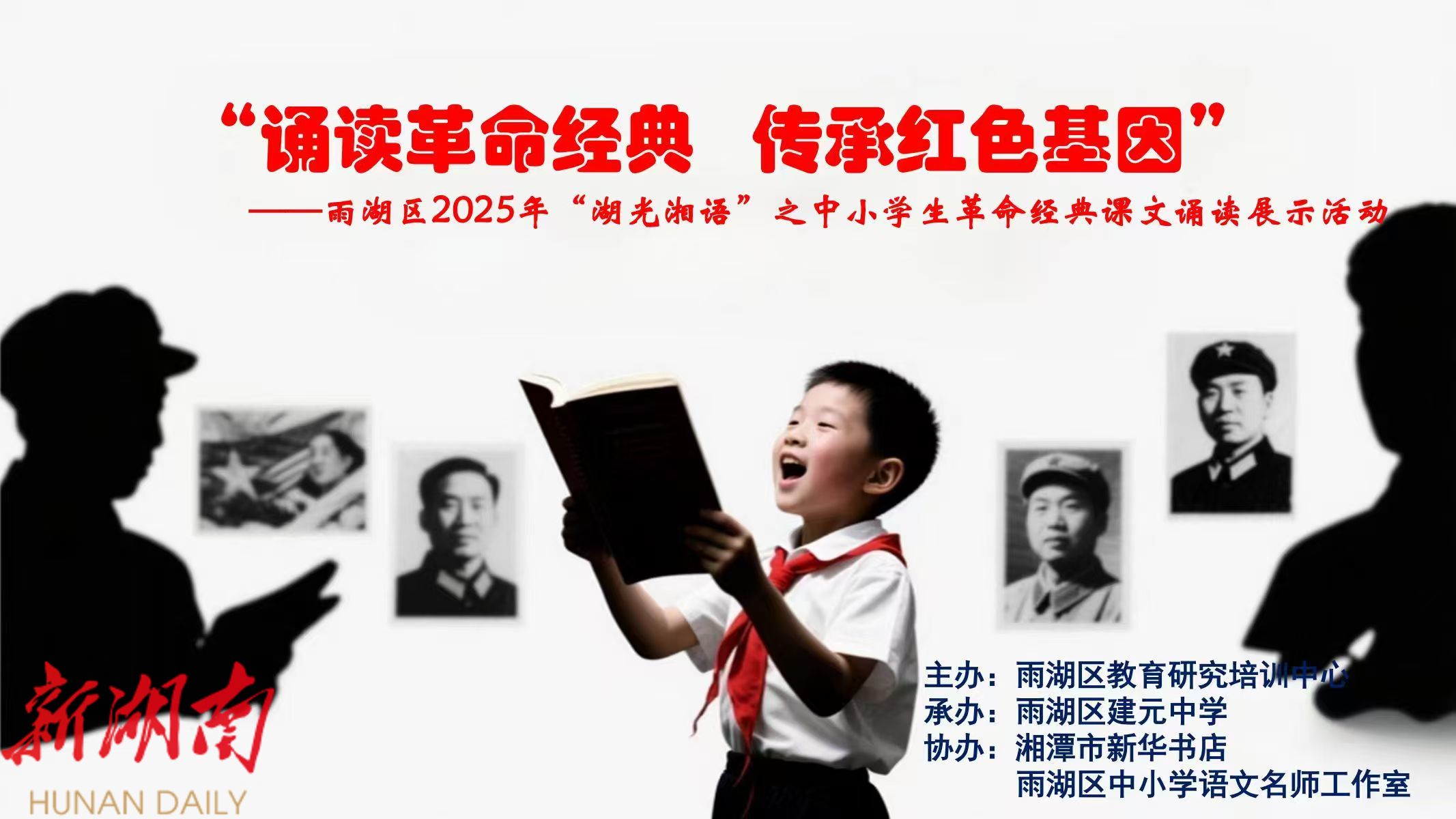 雨湖融媒4月25日讯 (通讯员 冯姻慈 谢黎荔)为深入弘扬革命精神,传承红色基因,引导中小学生在经典美文中感悟爱国情怀,提升语言文字素养,在世界读书日来临之际,雨湖区成功举办了“湖光湘语”之中小学生革命经典课文诵读活动。全区59所学校全员参与,经过预赛初赛,选拔17所学校班级代表在雨湖区建元中学立志报告厅举行了一场精彩纷呈的诵读盛宴。
