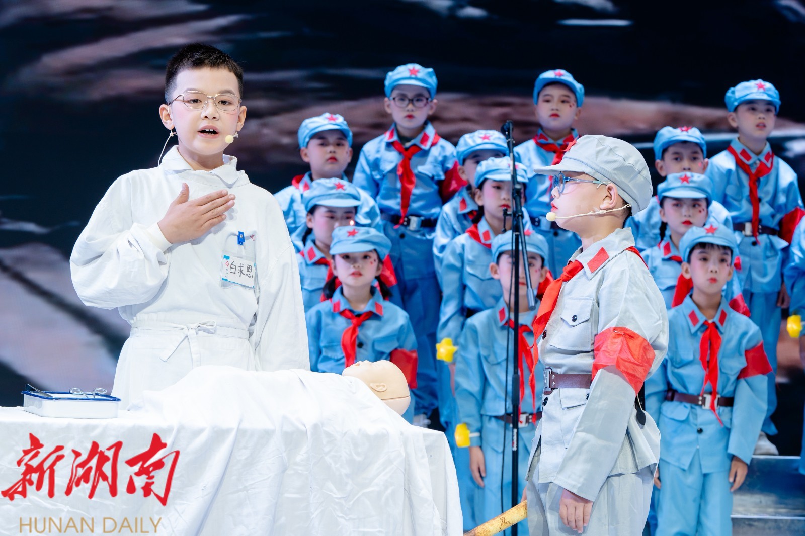 在《黄继光》的朗诵中,学生们用铿锵有力的声音,生动再现了英雄黄继光在战场上英勇无畏、舍身堵枪眼的壮烈场景,让在场观众深刻感受到革命先烈的崇高精神。而在《手术台就是阵地》的诵读里,他们又以细腻的情感,展现了白求恩大夫在战火纷飞中坚守岗位、无私奉献的高尚医德,让观众为之动容。