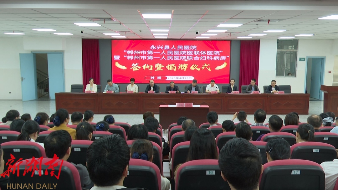 湖南日报·新湖南客户端4月25日讯(通讯员 欧阳永强 王娅婷)4月25日上午,郴州市第一人民医院与永兴县人民医院医联体合作签约仪式在永兴县人民医院举行,通过构建紧密型医联体合作模式,让永兴县群众在家门口就能便捷、高效地享受到与市级医院同质化的优质医疗服务。