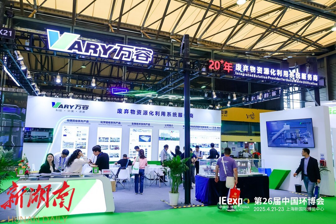 湖南日报·新湖南客户端4月25日讯(长沙经开区工作站记者 陈琪) 4月21日至23日,第26届中国环博会在上海新国际博览中心成功举行。万容科技携城乡废弃物资源循环低碳体系“三岛”模式精彩亮相。凭借技术创新和产业实践的优异表现,万容科技荣登环保科技TOP100企业榜单,并在展会现场进行主题演讲及战略合作签约,引发行业高度关注,为循环经济发展注入新活力。