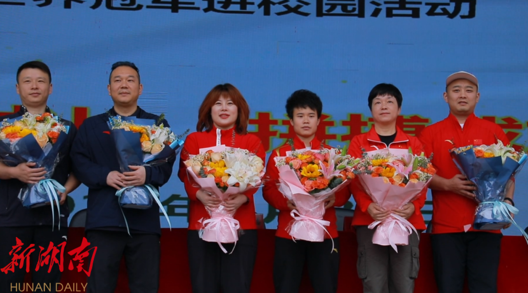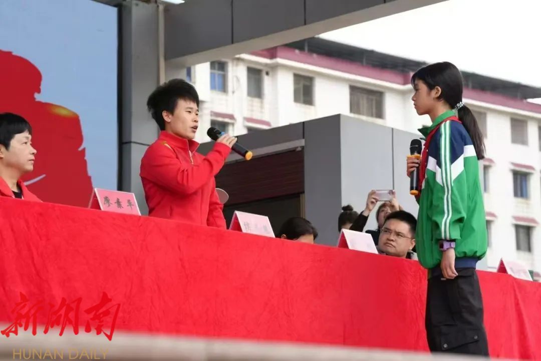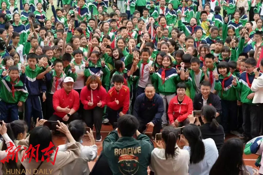 湖南日报·新湖南客户端4月25日讯(通讯员 汪清扬 刘志强 杨志娟)4月24日下午,奥运冠军王明娟、侯志慧,世界冠军廖素萍、乐茂盛、毛角、杨帆走进零陵区荷叶塘小学,开展“榜样力量燃动青春”——世界冠军进校园活动,以亲身经历传递运动精神,以榜样力量燃动青春,激励莘莘学子勇敢追梦、顽强拼搏。
