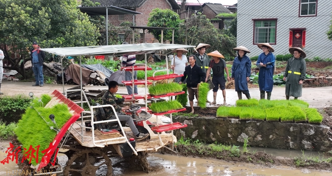 在冷水镇庄屋村的农田里,伴随着机器的轰鸣声,高速插秧机正在田间来回穿梭,整齐有序地进行插秧作业。农业科技人才们实时指导农户操作机械,确保插秧深度、间距精准达标。