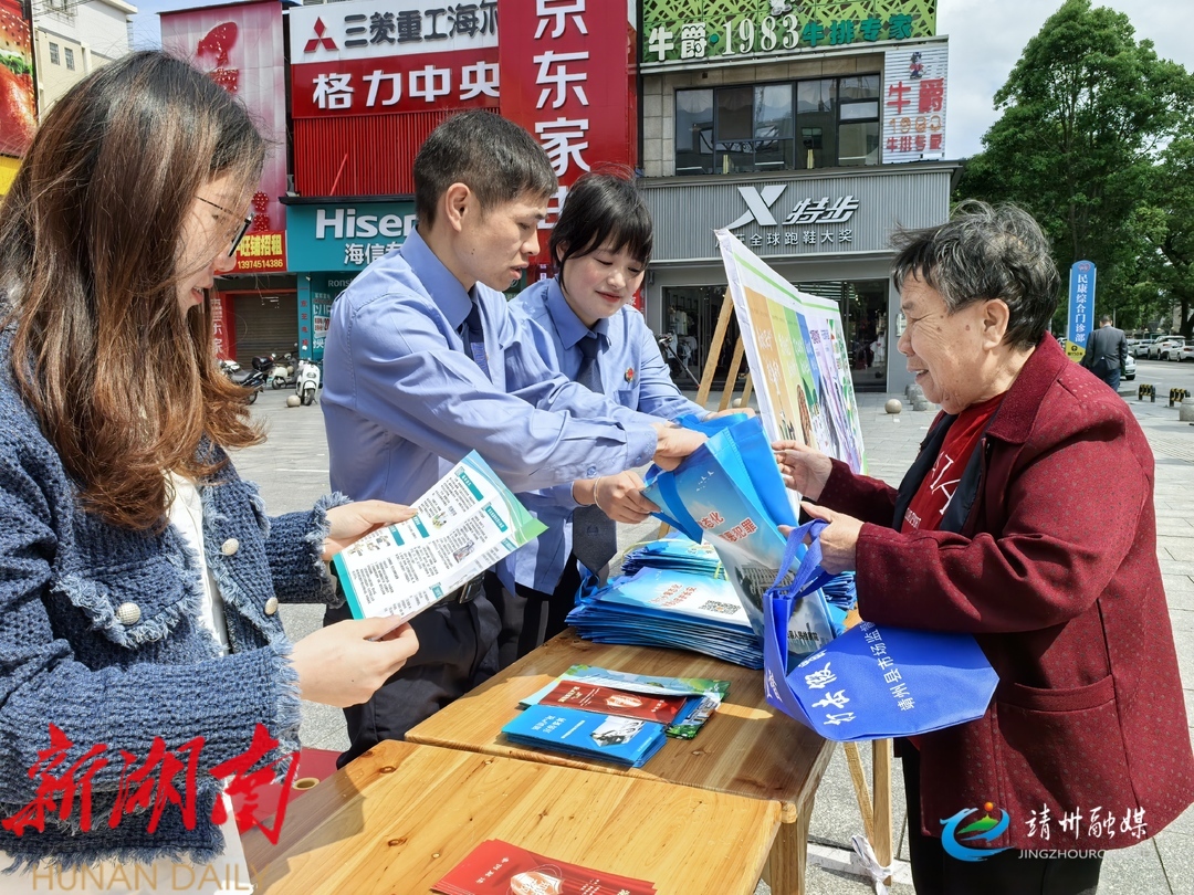 靖州融媒4月25日讯 (记者 钦苏芬 通讯员 潘莹 姚程钢)4月25日,中共靖州苗族侗族自治县委宣传部联合县市场监督管理局、县人民检察院、县新闻出版版权局,以“知识产权与人工智能”为主题,开展知识产权宣传周活动。