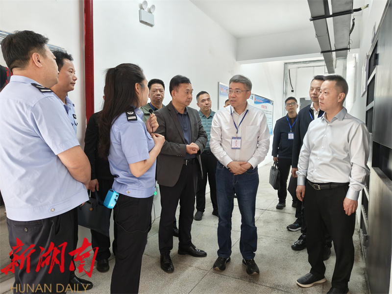 在岳阳县收治中心,李明海实地查看设施设备、人员配备和管理运行情况,重点了解病残吸毒人员收治、医疗保障和安全管理等工作。