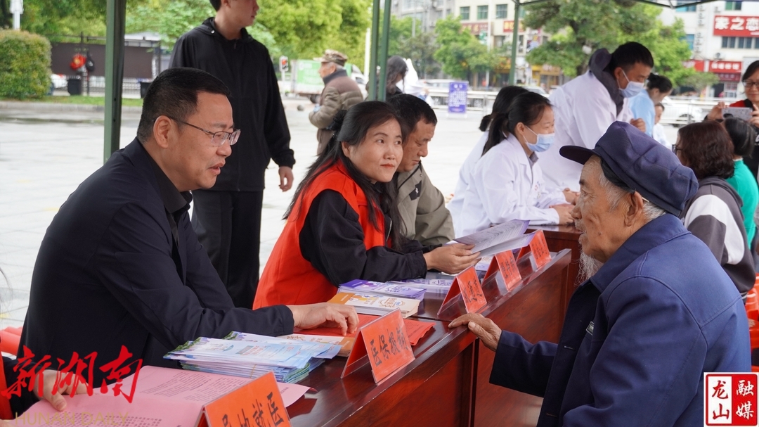 此次活动还联合龙山县人民医院开展了大型义诊服务。来自骨科、神经内科、中医推拿、内分泌科、消化科等五大科室的医生现场坐诊,为前来咨询的群众提供免费诊疗服务。义诊台前排起了长队,不少群众表示,这样的活动既学到了医保知识,又享受到了优质的医疗服务,真正做到了便民惠民。