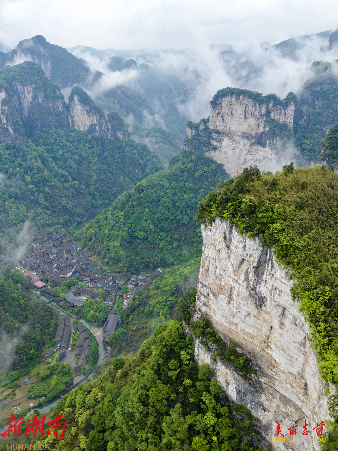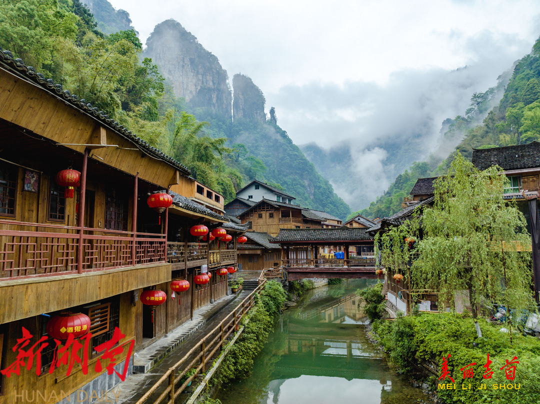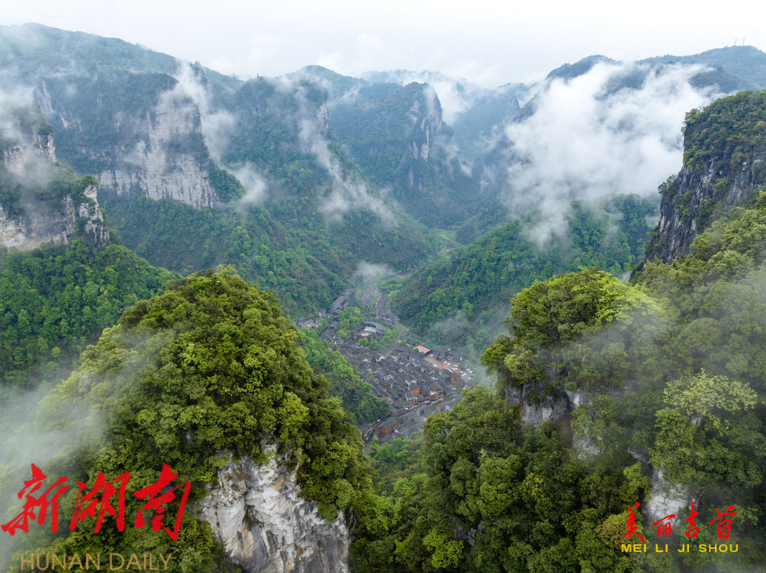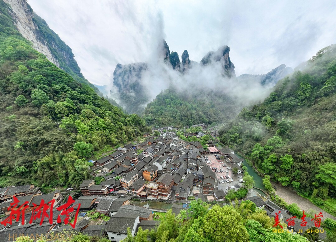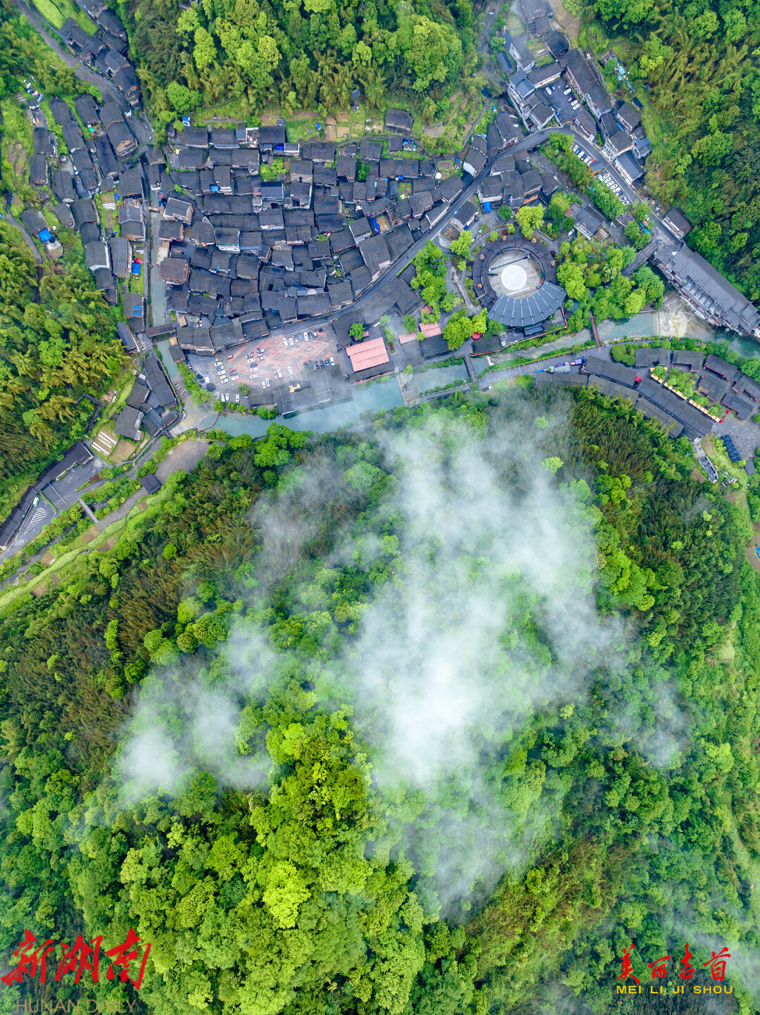 吉首市融媒体中心4月27日讯(全媒体记者 彭璟 ) 4月26日,吉首市矮寨镇德夯村雨后云雾缭绕,古朴的苗寨与险峻的峡谷、苍翠的山林在升腾的云雾中若隐若现,宛如一幅浑然天成的山水画卷。