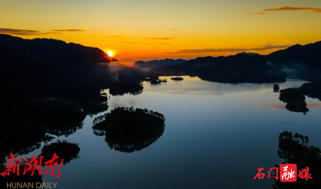新石门客户端4月27日讯(作者 陈千中)大美石门,最美仙阳。仙阳湖的美恰在夕阳西下之时。此刻,仙阳湖化作了一面鎏金错银的铜镜。夕阳醉汉似的倚在白云山坳,把整瓮胭脂都倾进了水里。粼粼波光顿时活起来,像万千尾金鲤在云锦上泼剌——那是晚风持着无形的钓竿,正垂纶于连绵的山峰之间。