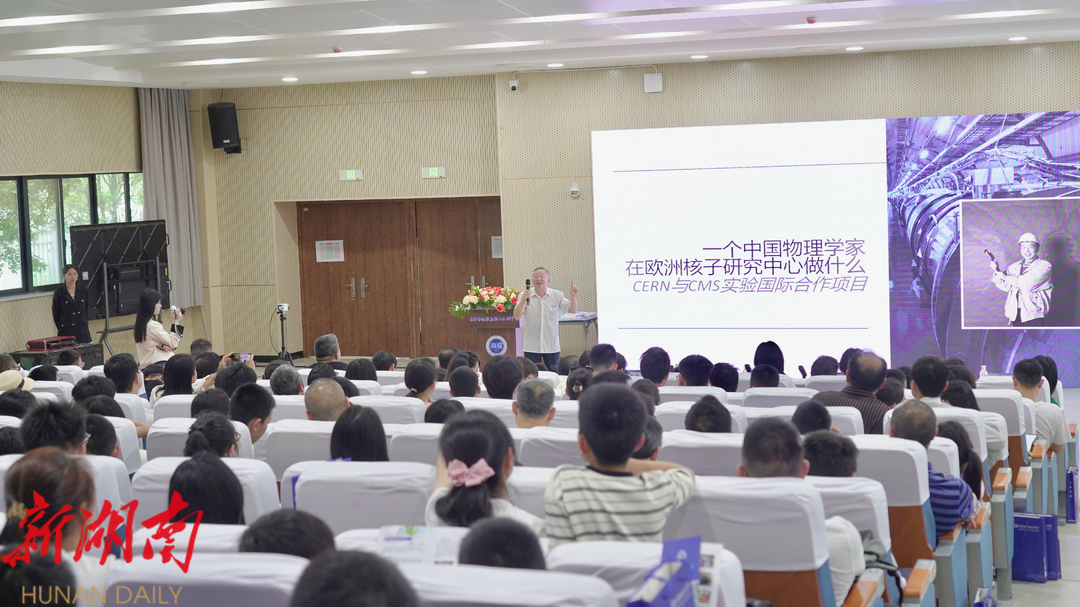 钱思进教授以《向光而生·探索无疆——一个中国物理学家在欧洲核子研究中心做什么?》为题,结合其新书《物质世界的本质是什么》,用生动形象的语言阐释了粒子物理的前沿成果与科学思维方法。他结合自身参与国际科研项目的经历,鼓励青少年“保持好奇心,勇敢探索未知世界”,点燃了在场观众的科学热情。