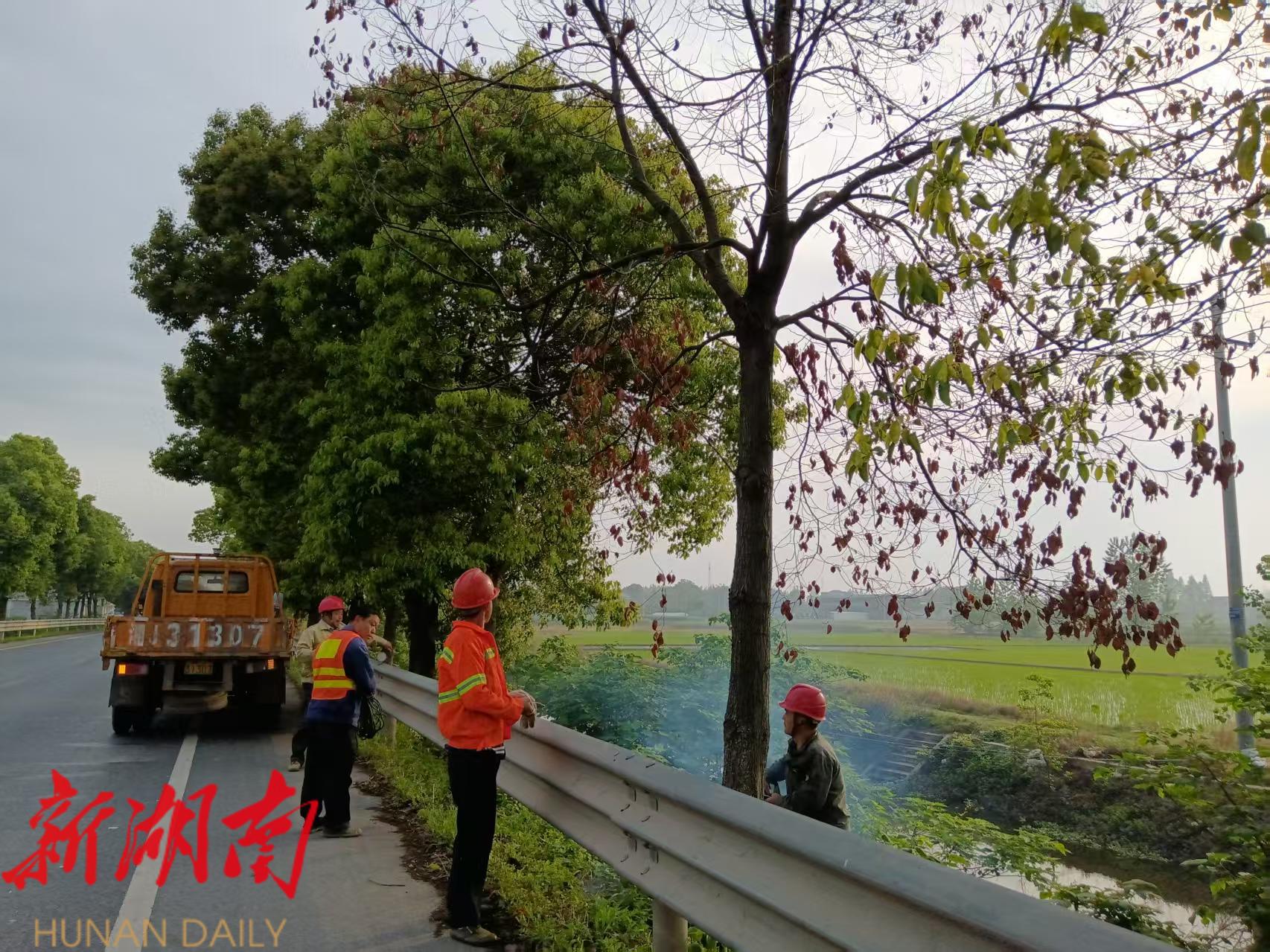 目前,汉寿县主要干道枯树清理工作已全面完成,有效提升了公路安全通行水平。中心提醒广大驾驶员:强对流天气期间行车需注意观察路况,遇障碍物及时拨打养护热线反映,共同维护道路交通安全。