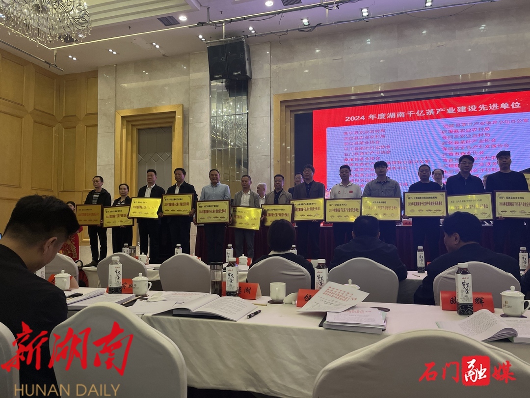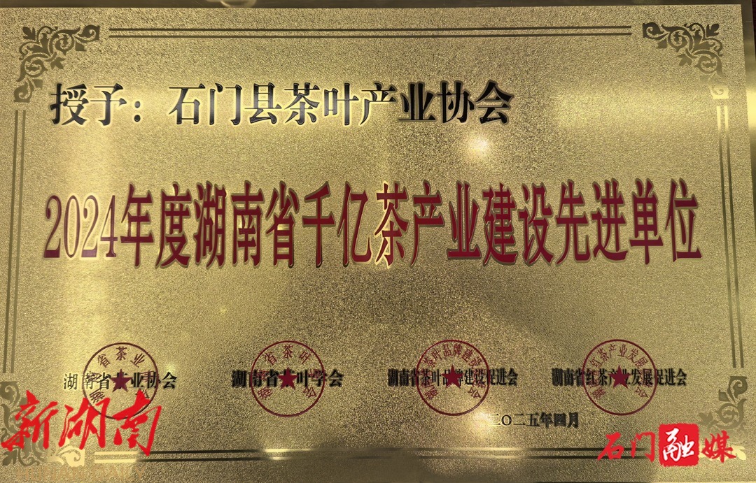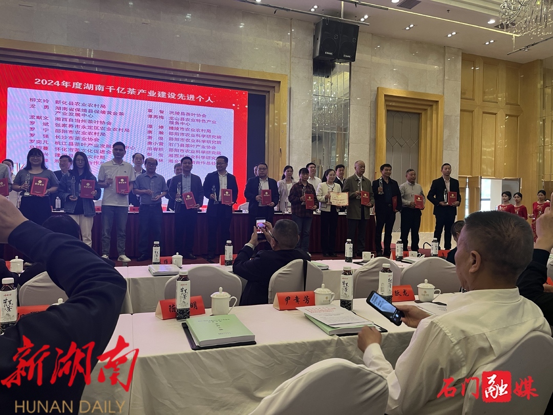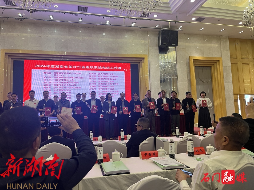 石门县茶叶产业协会荣膺“2024年度湖南千亿茶产业建设单位”。唐小雷、马杰分别荣获“2024年度湖南省千亿茶产业先进个人”和“2024年度湖南省茶业行业组织系统先进工作者”。