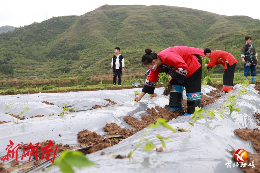 湖南日报·新湖南客户端4月27日讯(通讯员: 邓雨露 杨泽江 张庆港) 近日,走进花垣县吉卫镇良帽村,田间一片繁忙景象,农户们在种植大户麻长青的带领下,正忙着栽种线椒,为今年丰产增收打下基础。