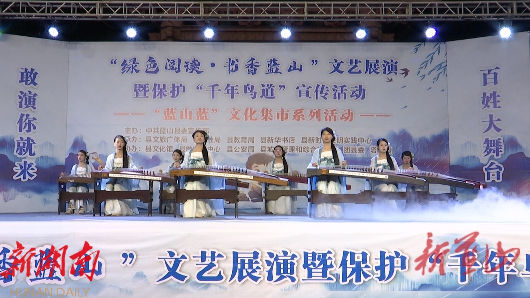 蓝山县举办“蓝山蓝”文化集市之“绿色阅读 书香蓝山”文艺展演暨保护“千年鸟道”宣传活动