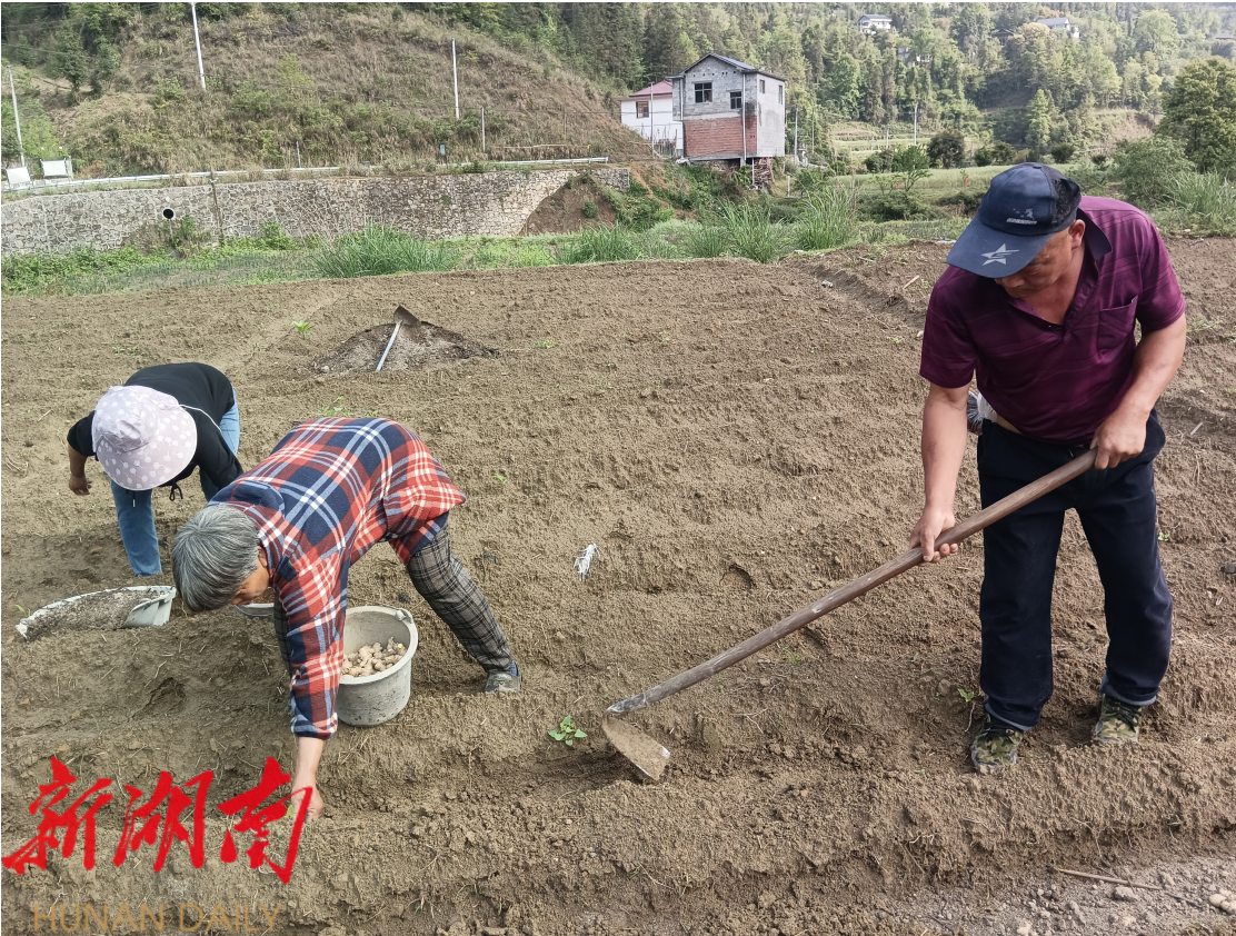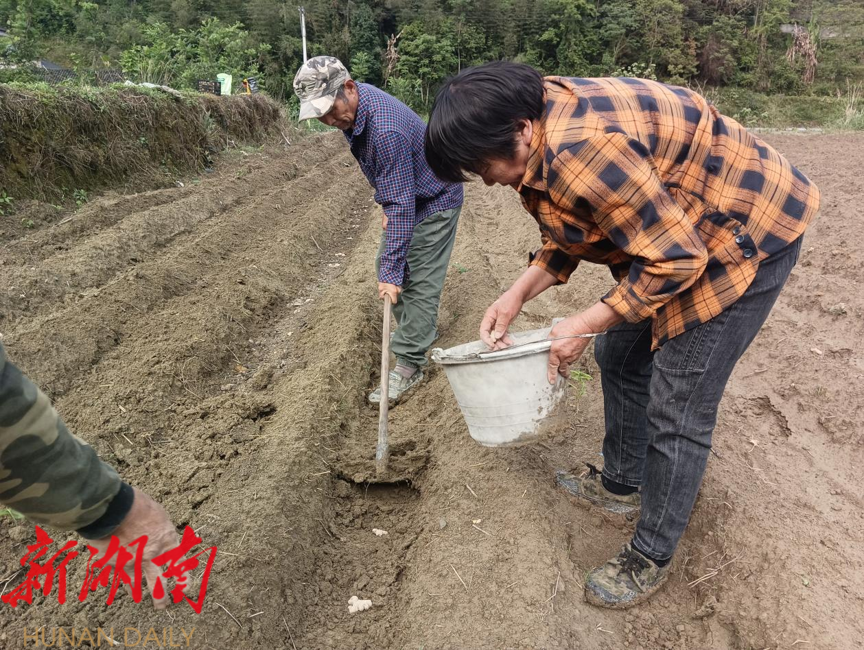 湖南日报·新湖南客户端 4月27日讯(通讯员 孙榕霞)“以前农闲时只能在家带孩子,现在在家门口就能干活赚钱,一天能挣120块钱呢!”4月27日,在河口乡栗洞村的姜田里,村民谷彩琴一边熟练地播撒着姜种,一边高兴地说着生活的变化。