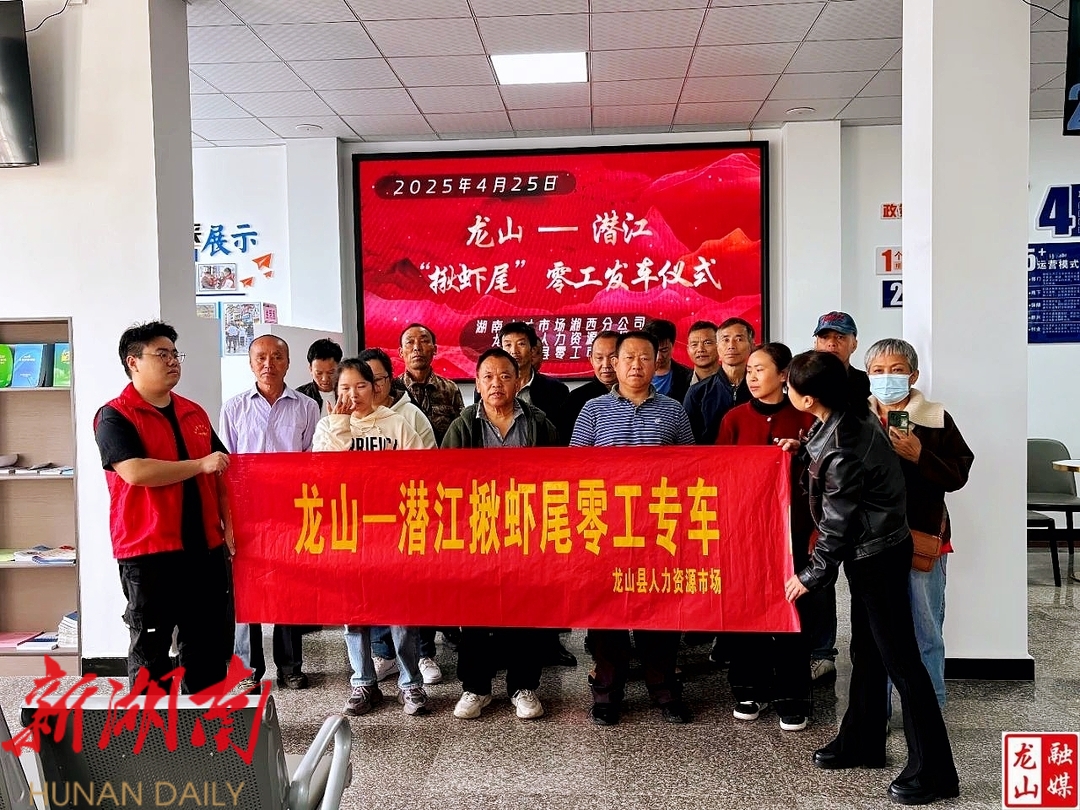 龙山县融媒体中心4月27日讯(记者 周娇 通讯员 丁浩 彭欣欣)随着湖北地区的小龙虾产业进入繁忙的剥虾季,4月25日上午9点,龙山县零工赴湖北潜江“揪虾尾”零工发车仪式在县零工市场举行,来自县内部分乡镇(街道)的20余名零工即将奔赴湖北潜江开展“揪虾尾”工作。