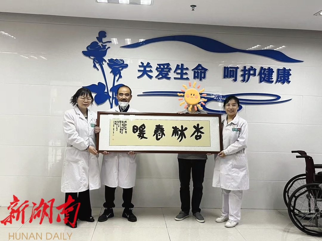 经过70天治疗,患者神志清醒,能简单回应,肢体肌力增强,吞咽功能改善。家属出院时送上“杏林春暖”牌匾,表达对医护团队的诚挚感谢 。