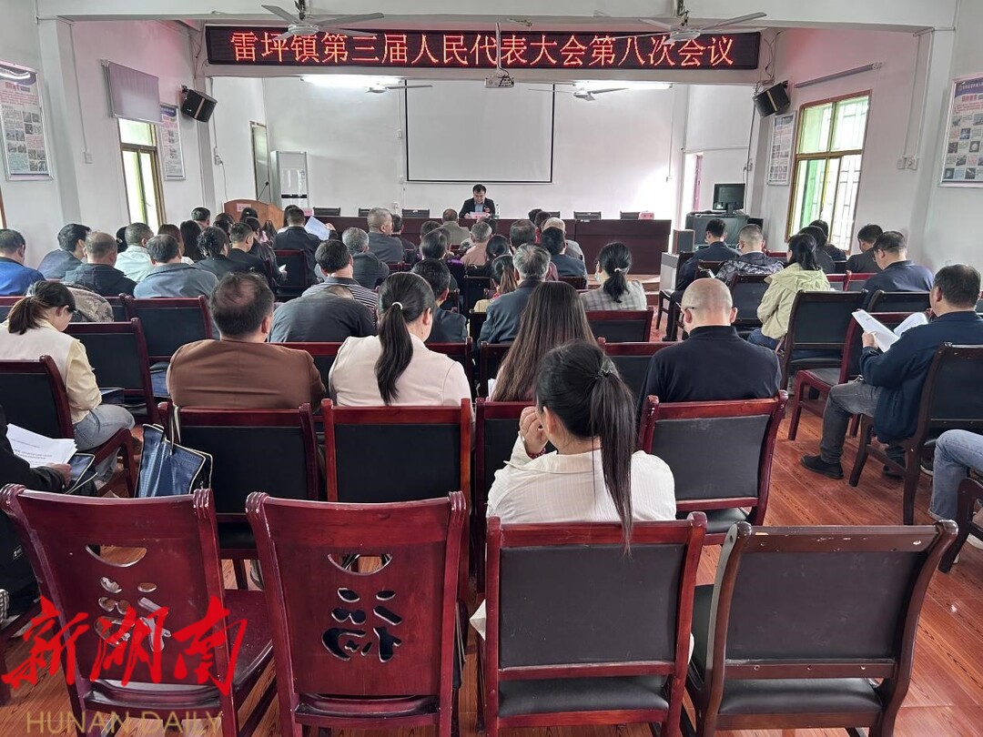 新桂阳4月28日讯(通讯员 张琦 刘振宇)4月28日,雷坪镇第三届人民代表大会第八次会议召开,来自全镇各行各业的64名人大代表和31名列席人员参加会议。